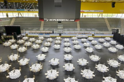 Qui si svolgono anche molti altri eventi piccoli e grandi, poiché l'arena multifunzionale di Brunico offre anche l'ambiente perfetto per concerti, conferenze, eventi aziendali e molto altro.