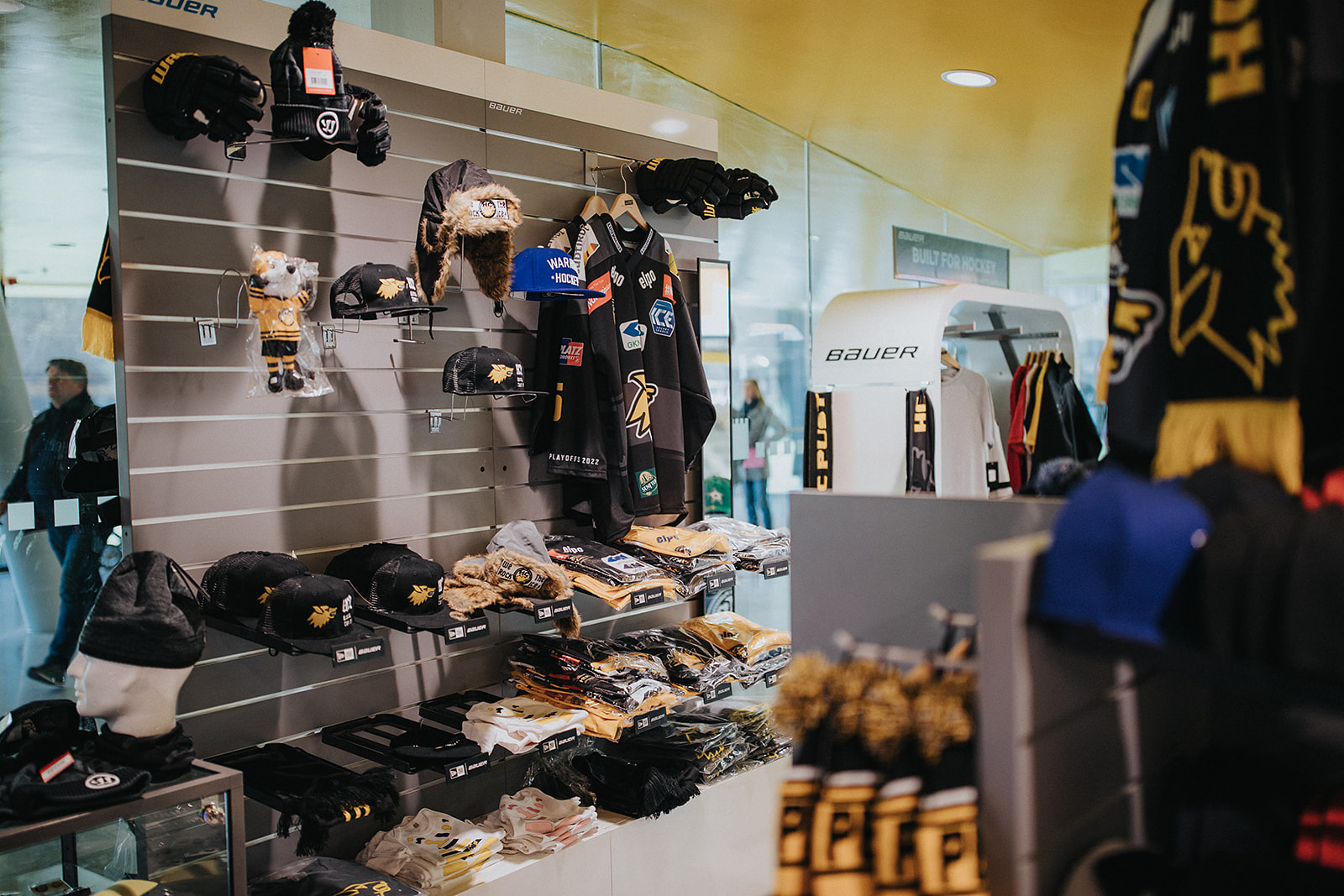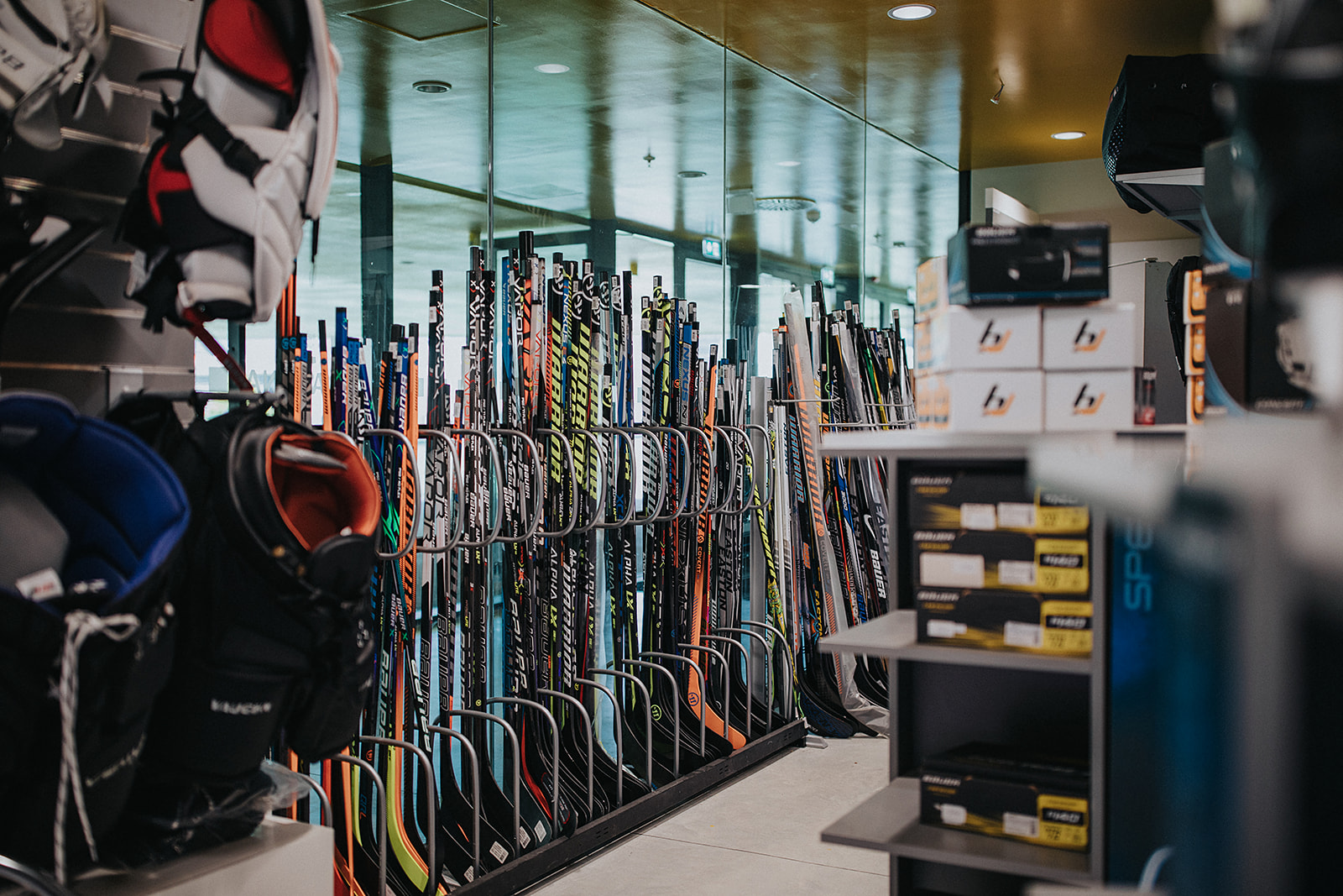 Vicino al ristorante “Go West” presso l’ingresso principale trovate lo shop “Pro Hockey” che offre attrezzature ed accessori dedicati al mondo del pattinaggio su ghiaccio – pattini, mazze, caschi ecc. nonché tutti gli accessori per i tifosi.