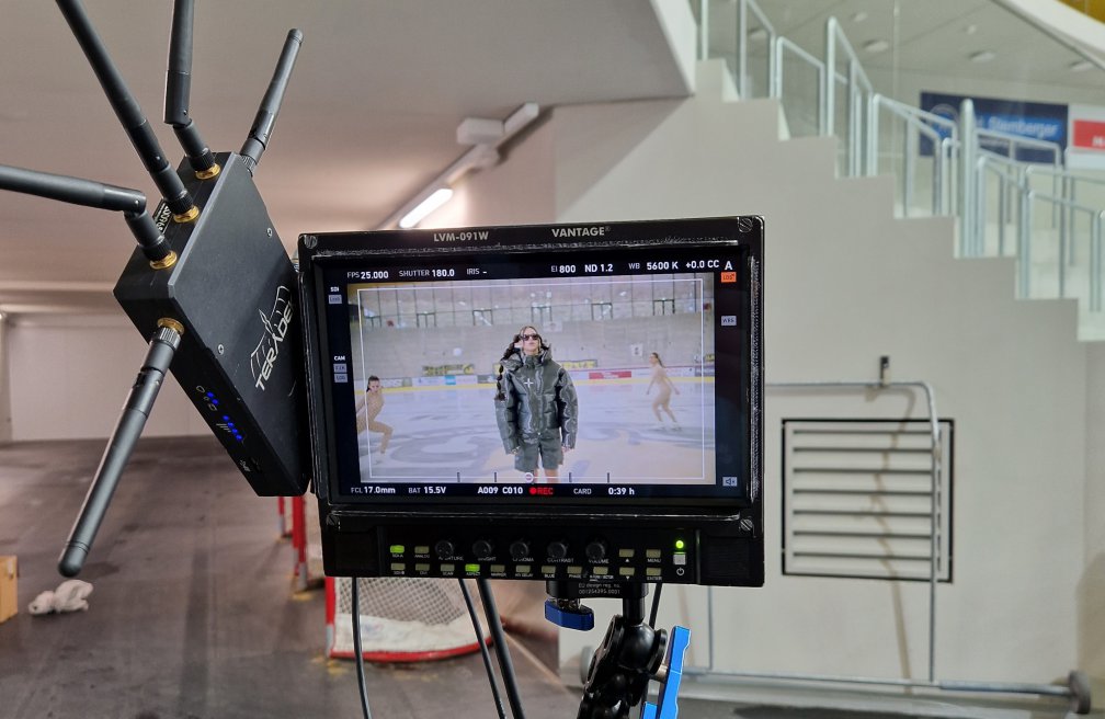 In sintonia con il titolo della sua nuova canzone “Fieber/Glatteis” – febbre/ghiaccio, la cantante, cantautrice e attrice tedesca Nina Chuba ha scelto l’Intercable Arena per girare il videoclip.