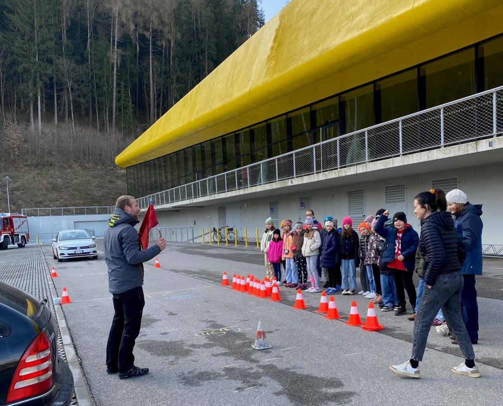 Presso l’area esterna dell’Intercable ARENA i bambini delle quarte classi del circolo di scuola elementare di Brunico imparano come comportarsi correttamente nel traffico stradale. Nell’ambito di diverse prove pratiche li viene dimostrato il concetto dello spazio di frenata sia con il fondo stradale asciutto che bagnato. L’apprendimento è immediato, in quanto già alla seconda prova, lo spazio di frenata stimato dai bambini è molto più realistico.