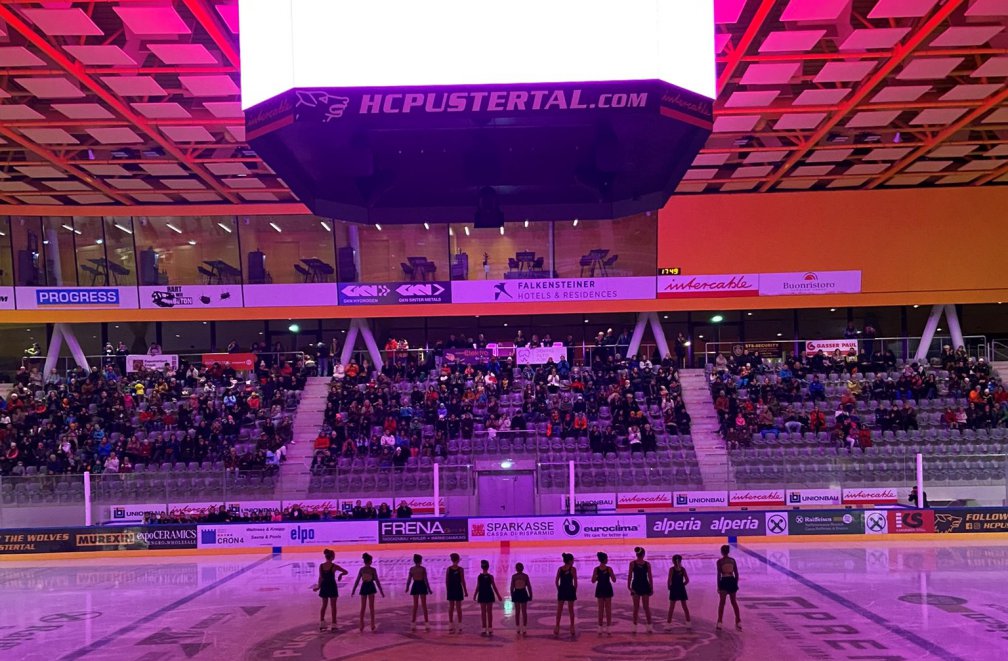 Il pubblico è rimasto stupefatto della performance delle atlete e dell’atleta del PusterIce Club. Anche i più piccoli hanno interpretato con grande concentrazione ed entusiasmo le canzoni dell’Eurovision Song Contest e sono stati ricompensati con il grande applauso del pubblico.