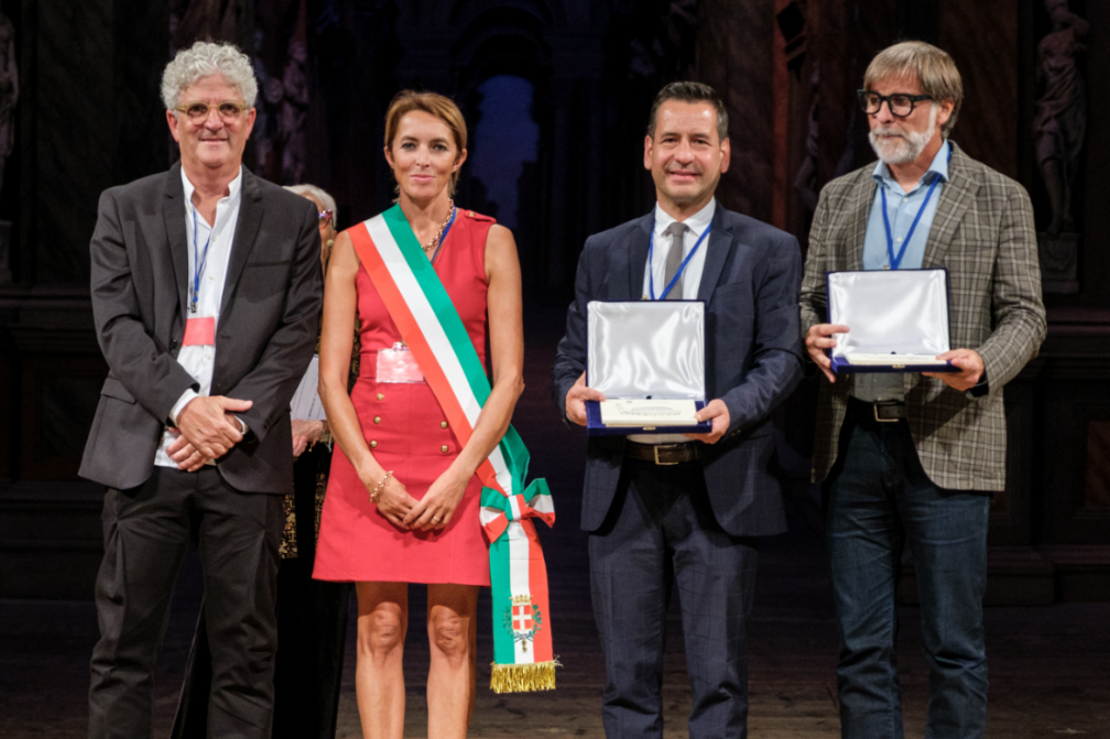 Lo studio di architettura CeZ - Carlo Calderan e Rinaldo Zanovello di Bolzano nel 2015 aveva vinto il concorso di progettazione per l’impianto per sport su ghiaccio ed era in seguito stato incaricato della progettazione. I committenti dell’opera erano il Comune e l'Azienda Pubbliservizi di Brunico. Pertanto, Gustav Mischi, direttore generale dell’Azienda Pubbliservizi, ha ritirato il premio il 16 settembre 2022 al Teatro Olimpico di Vincenza. "Il premio è un riconoscimento per il lavoro assai complesso nella fase di pianificazione ed esecuzione. Sono lieto di avere potuto prendere in consegna il premio a nome di tutti coloro che hanno contribuito al buon esito del progetto", sottolinea Gustav Mischi.