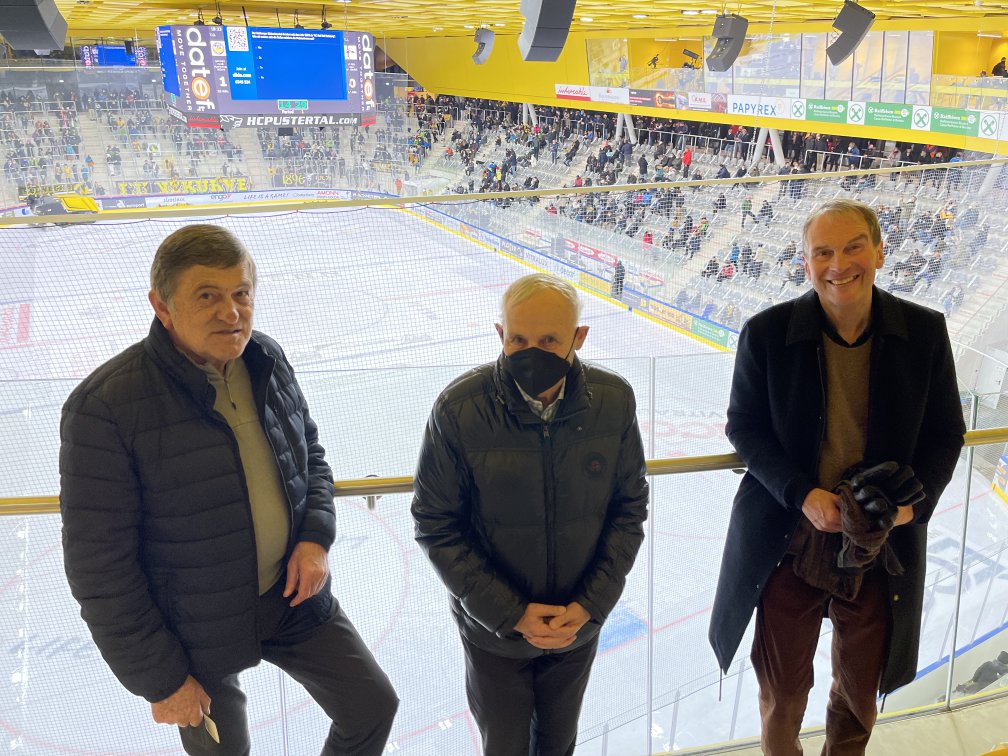 Su invito del presidente della Brunico Aktiv S.r.l., Alfred Valentin, Toni Innerhofer, ex sindaco di Campo Tures, ha partecipato all'avvincente partita dell'HC Pustertal Wölfe contro l'EC Red Bull Salzburg il 2 gennaio 2022 all’Intercable Arena.